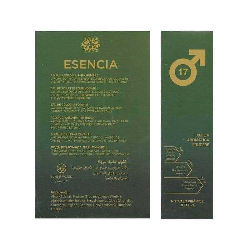 Das Eau de Toilette (EDT) Sunset World ESENCIA wird in Spanien von Fragancias Mais aus hochwertigen Rohstoffen und mit mäßiger Haltbarkeit auf der Haut hergestellt.
