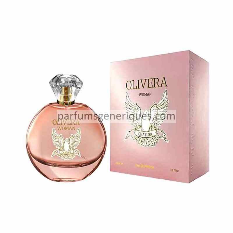 En la fabricación de Chatler OLIVERA se ha empleado una fórmula original con inspiración en otra fragancia y también ingredientes totalmente naturales. Su pirámide olfativa está compuesta por una combinación de esencias naturales procedentes de Francia, que le confieren un aroma muy similar al de otra fragancia muy apreciada por los amantes de los perfumes.